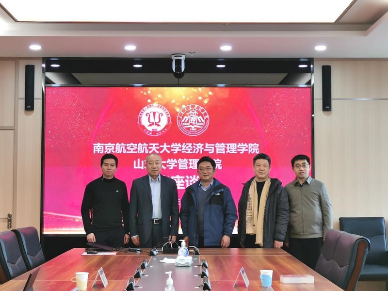 周德群院长、王群伟副院长、江可申教授一行访问了山东大学管理学院,受到山东大学管理学院武常岐院长的热情接待,双方开展了亲切友好的交流。
