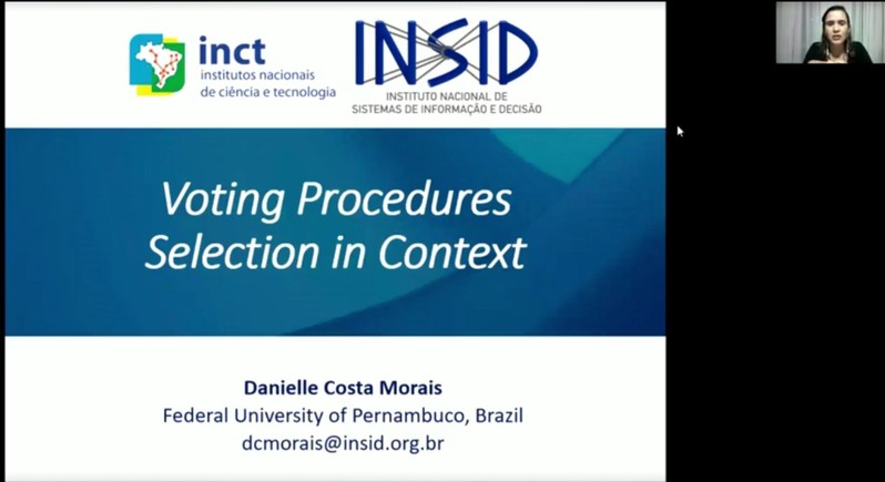 4月13日上午,巴西伯南布哥联邦大学教授Danielle Costa Morais受学院智能决策与风险分析研究所邀请,在腾讯会议作了题为“Voting Procedures Selection in Context”的学术报告。男人天堂 教授徐海燕等教师及部分硕、博研究生线上参加了Danielle Costa Morais的报告分享,本次学术报告由徐海燕主持。