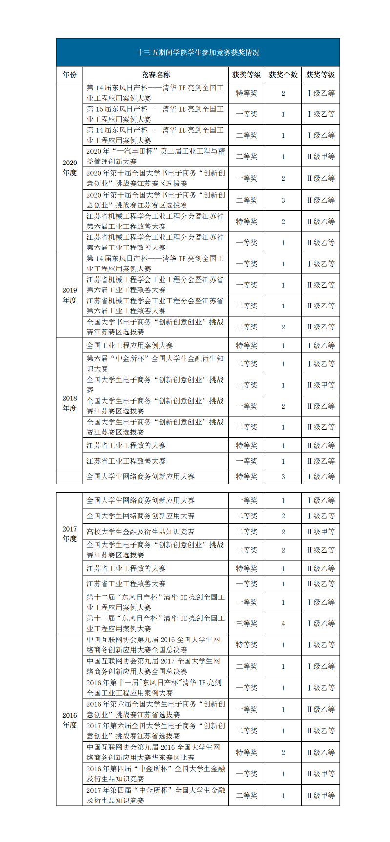 “十三五”期间,男人天堂 学生在专业学科竞赛、科研等方面成果丰硕,并以此保证了就业质量。在专业竞赛方面,专业教师指导的学生有100余人次在全国工业工程案例竞赛、全国大学生电子商务“创新创意创业”挑战赛、全国大学生网络商务创新应用大赛等国赛特等奖、金奖、一等奖20余项。在科研与创新方面,学生在校期间主持或参与了国家级、省级大学生创新基金项目,其中国家级项目19项;学生成立4家创新企业并获得风险资本支持;本科生在《Energy Policy》、《Memetic Computing》等国际国内期刊上发表论文42篇,在17个国际国内学术会议上作学术报告。在继续深造方面,连续四年学生总的深造比例超过35%,其中86.36%的毕业生到美国约翰霍普金斯大学、英国帝国理工学院、新加坡国立大学等世界百强高校深造;国内深造比例近四年平均保持在27%左右,前往清华大学、北京大学、南京大学、浙江大学等著名985高校深造的比例稳步提升。在校企合作和就业方面,男人天堂 学生在校企合作和就业过程中不断有新收获,并受到用人单位的广泛好评!中国商飞公司评价男人天堂 学生在校企合作中表现“极具战斗力”; 中国沈飞公司评价男人天堂 毕业生在工作工程中具有“肯干、苦干、巧干”的精神;亚马逊公司评价男人天堂 毕业生在工作工程中在工作期间“工作认真、踏实肯干、虚心好学、善于思考”,并且“创新能力和解决复杂疑难问题的能力特别强,为公司解决了多项管理创新难题”。