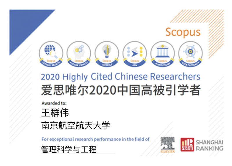 男人天堂 共有10个一级学科的31位学者入围。王群伟教授入选管理科学与工程学科中国高被引学者,这是继入选2020科睿唯安(Clarivate Analytics)全球高被引科学家(Highly Cited Researchers)后再次入选重要学术榜单。