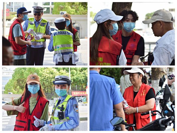 活动过程中,支部成员配备爱心马甲分别行动,先后为环卫师傅们、家长们、志愿者们、警察叔叔们送去了一份清凉,并收获到了热情回应。支部成员向对方介绍了自己的身份和来意——作为南航学生自发组织并开展此次活动,以彰显南航担当,传递青年力量。对方也对支部成员的行动表示肯定和赞赏:“优秀的学校,优秀的青年学生们!”