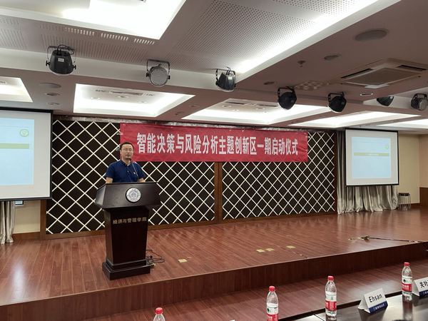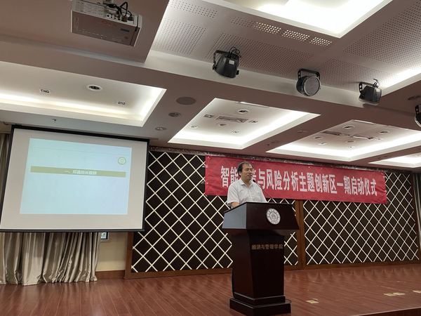 邓晶院长在首先做了简短的发言,强调了智能决策与风险分析主题创新区启动的目的,对参加创新区的同学们提出了期待与展望。朱建军教授随后做了讲话,介绍了什么是主题创新区,鼓励同学们利用高水平研究平台,积极投身科研创新活动中。智能决策与风险研究所所长徐海燕老师介绍了研究所的家文化。徐老师希望参与项目的六十余位同学能够在一个大家庭里面,相互协作、碰撞出思维的火花。