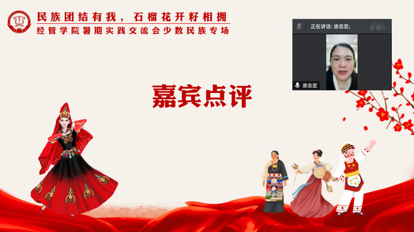 嘉宾点评阶段,涂志宏首先赞扬了本院同学“将小我融入大我”的青春担当,对同学们在疫情和灾情的双重考验下克服艰难险阻进行实践活动表示肯定,指出“各民族像石榴籽一样紧紧抱在一起”是民族工作努力的方向,更对同学们寄予厚望,“要将实践所获融入到今后的学习生活中去”,展现经管人的担当。