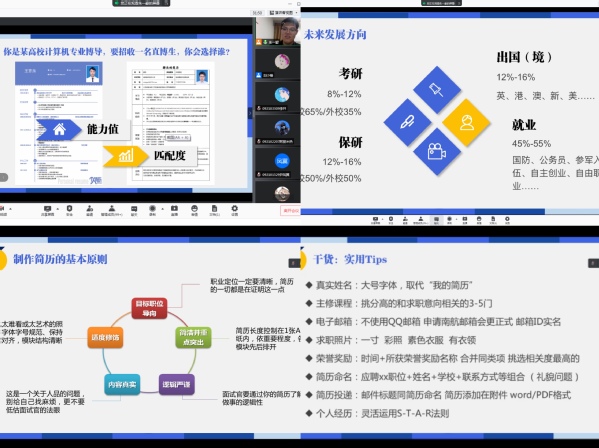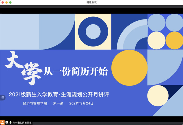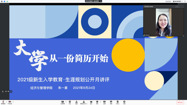 为了帮助2021级新生更好地了解学校、了解专业,为今后的学习和生活打下良好基础,9月24日,男人天堂 2021级本科生辅导员朱一豪以“大学,从简历开始”为主题线上开展了公开月讲评活动,院党委副书记涂志宏、团委书记刘小杨及全体2021级本科生参加了本次活动。