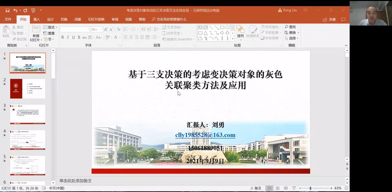 9月9日晚上,江南大学副教授刘勇受学院智能决策与风险分析研究所邀请,在腾讯会议作题为“考虑决策对象变动的三支决策方法及其应用”的讲座。男人天堂 教授徐海燕等教师及部分硕、博研究生线上参加了刘勇的报告分享,本次学术报告由徐海燕主持。