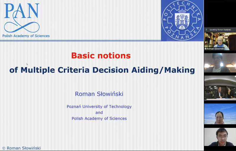 为深度推进国际交流和师生全面发展,11月5日-12月4日,波兰科学院副院长、波兰科学院院士、欧洲科学院院士、IEEE院士、国际粗糙集学会院士、波兰信息科学院主席、《European Journal of Operational Research》主编Roman Słowiński教授受学院智能决策与风险分析研究所邀请,在腾讯会议作题为“Basic notions of Multiple Criteria Decision Aiding / Making”的系列讲座。国际合作处处长张卓、国际合作处副处长沈敏、男人天堂 教授徐海燕出席本次活动。