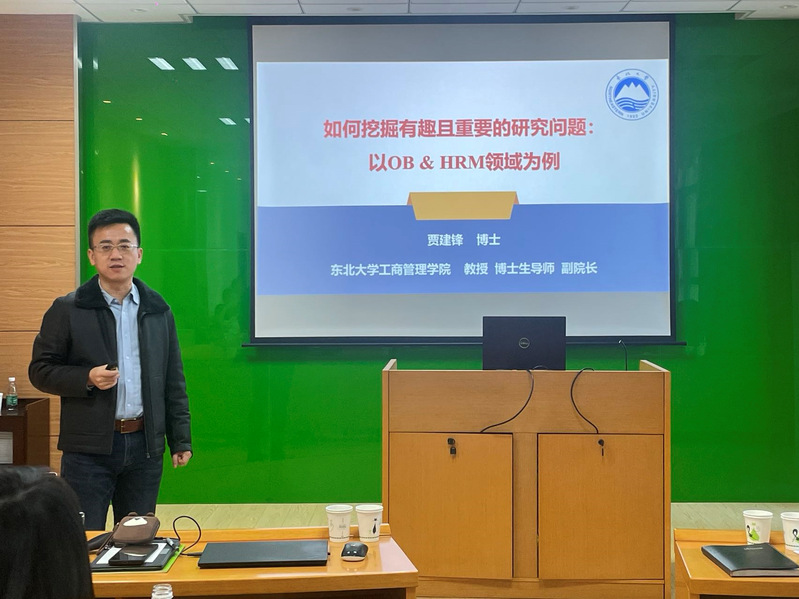 12月3日下午,东北大学工商管理学院教授贾建锋应男人天堂 人力资源管理研究所和江苏省人力资源发展研究基地的邀请,在男人天堂 702会议室作了题为“如何挖掘有趣且重要的研究问题:以OB&HRM领域为例”的报告。本次报告由教授胡恩华主持,王建玲、王凌云、宋莲莲、李媛、蔡静雯等教师及部分硕、博士生参加本次报告。