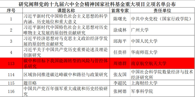 周德群教授担任首席专家的项目《碳中和目标下我国能源转型风险与管控体系研究》获批立项。此次全国共立项130个项目,分布在85个责任单位,其中高校69所。