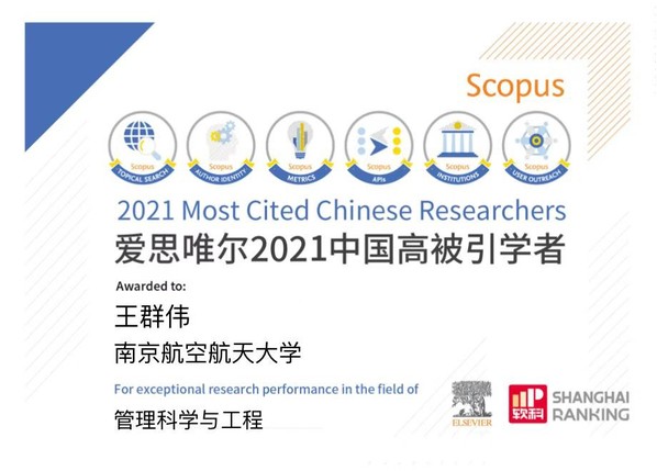 王群伟教授入选管理科学与工程学科中国高被引学者。