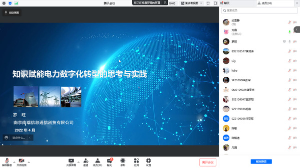 4月22日下午,南瑞集团正高级工程师,江苏省产业教授罗旺应男人天堂 管理科学与工程系、以及信息管理与电子商务研究所的邀请,通过腾讯会议作了“知识赋能电力数字化转型的思考与实践”报告,本次报告由米传民教授主持,部分硕、博士研究生参加此次报告。