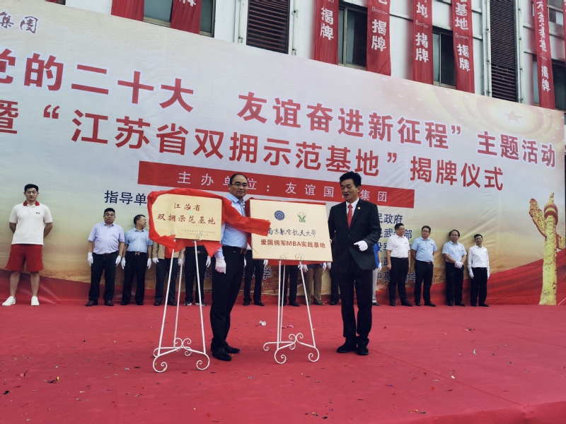 友谊国际集团被江苏省双拥办授予江苏省双拥示范基地,中国人民解放军仪仗大队专程为本次活动发来祝贺信。