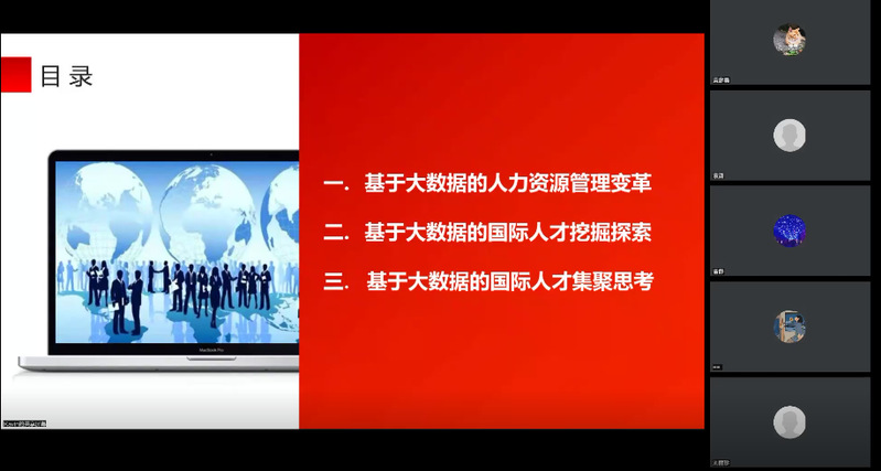 讲座主要从四个方面展开。首先是大数据人力资源管理变革的必要性和变革方向。教授姚凯根据2021年9月中央人才工作会议上强调的人才强国战略,并紧密结合大数据时代背景,指出基于大数据的人力资源管理变革是实施人才强国战略的重要方面,并从人力资源分析系统变革、人力资源职能变革、组织架构和组织文化变革方面指出了基于大数据的人力资源管理变革的重要方向。其次是大数据人才挖掘的关键方法。人才资源作为高端人力资源,挖掘国际人才对人力资源管理变革至关重要。姚凯指出可以采用爬虫技术、采集数据的清洗机制,建立科研人员信息库、科技专家信息库,以及在线推荐系统等人才挖掘大数据技术实现以全球人才挖掘、科技能力画像完善、推荐精准、更新速度快、关系关联挖掘、评价模型全面为特点的大数据人才挖掘。然后是大数据人才集聚的影响分析。实现人才集聚对城市获得人才资源具有重要的意义。基于此,教授姚凯对大数据技术创新背景下的国际人才集聚影响进行了分析,指出大数据技术在数据采集、数据挖掘、需求预测和动态追踪评价方面的运用会通过影响人力资本吸引、人力资本转化和人力资本价值产出进而影响国际人才集聚,并根据分析结论提出在大数据技术创新对国际人才价值转化路径的影响过程中要重视国际人才集聚平台化、国际人才管理模式柔性化、国际人才动态跟踪评价和组织面临大数据能力提升挑战方面的影响。最后是国际人才集聚商业生态系统的建设。构建国际人才集聚商业生态系统有助于城市持续获取人才资源。教授姚凯介绍了基于结构要素和基础要素构建大数据国际人才集聚商业生态系统的设计,并在此基础上介绍了基于大数据的国际人才集聚载体系统的构建,并从载体的评估和不同地区吸引国际人才时载体的战略选择两个方面进行了详细的论述。