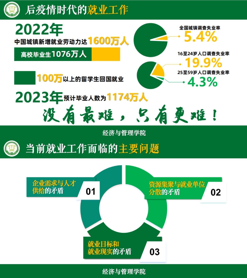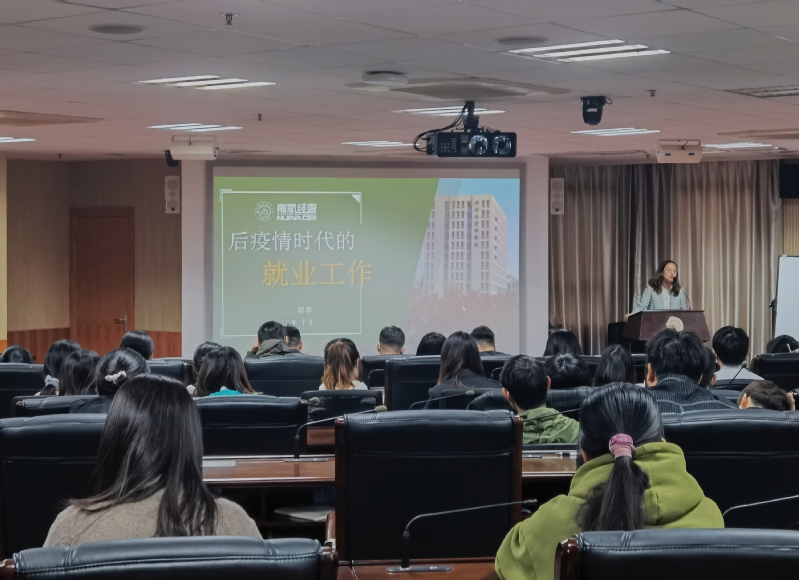 随后,胡苹为同学们详细分析了当前研究生就业工作存在的突出问题,重点阐述了客观存在的三对矛盾,即企业需求与人才供给的矛盾、资源聚集与就业单位分散的矛盾、就业目标和就业现实的矛盾,并结合实际案例讲解了应对策略。