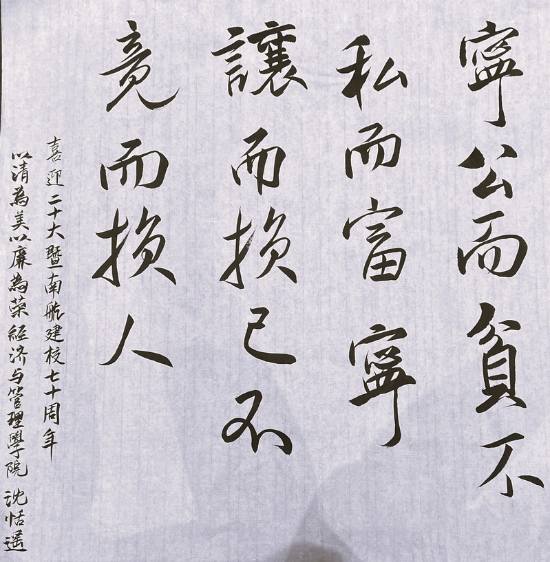 近期,廉心向未来——“清廉南航”廉洁文化作品征集在男人天堂 顺利展开,反响热烈。经管学子坚持以习近平新时代中国特色社会主义思想为指导,围绕学习贯彻党的二十大精神、推进清廉南航建设等重要工作,积极倡导以清为美、以廉为荣的价值理念,运用艺术的表现形式将廉洁教育化虚为实,展现优良校风、学风、家风,以手中纸笔,描绘出他们心中的廉洁。