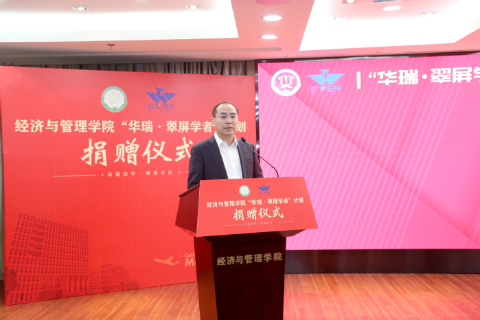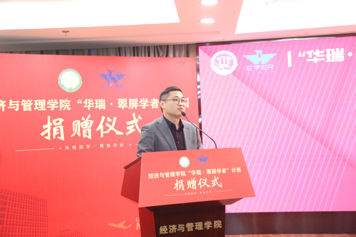 康宜华院友对学校和学院的邀请表示感谢,对能为母院发展助力感到欣慰和自豪。他以亲身经历激励青年学者们要树立远大理想,勤勉敬业,在实干中实现自己的人生价值。他强调,科技是第一生产力、人才是第一资源、创新是第一动力,要有“让世界一流人才为我所用”的眼光,实现人才“量的合理增长,质的稳步提升”。他表示,捐赠是有限的,华瑞集团立足长远,正在和学院共同探索教育培训合作新机制,瞄准引进世界一流人才,增强学院持续造血功能,形成更大的高层次人才蓄水池。