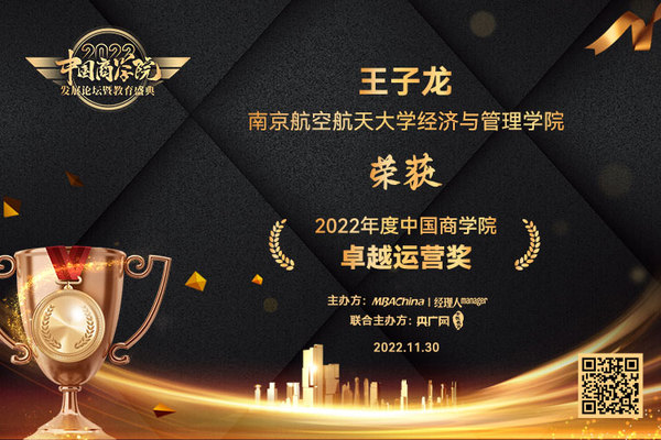 男人天堂 副院长王子龙教授荣膺“中国商学院卓越运营奖”。
