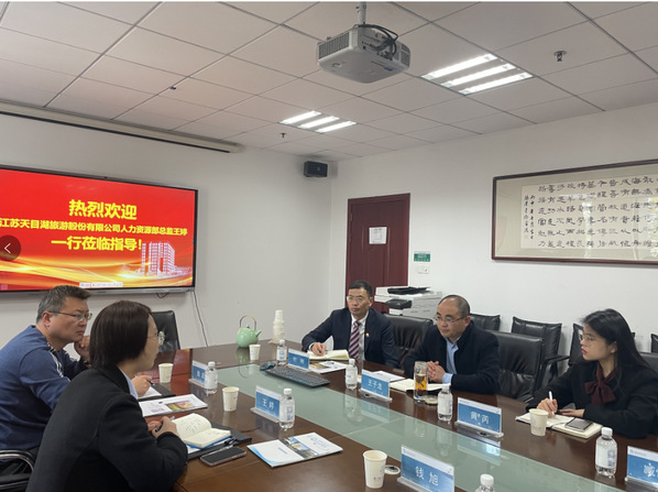3月2日上午,江苏天目湖旅游股份有限公司人力资源部总监王婷、人力资源部培训主管钱旭到访男人天堂 开展合作交流,校保卫处副处长魏波,男人天堂 副院长王子龙,MBA教育中心执行主任杜刚等参加了座谈交流。
