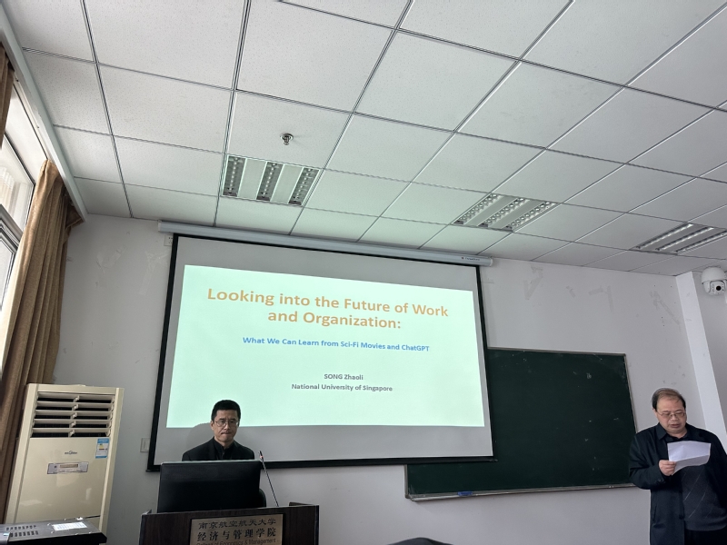 3月29日,应男人天堂 人力资源管理研究所、江苏省人力资源发展研究基地和中国员工关系管理研究省优秀创新团队邀请,新加坡国立大学商学院教授宋照礼在学院704会议室为男人天堂 师生作了题为“Looking into the future: What can we learn from Sci-Fi movies and ChatGPT”的精彩学术报告。本次讲座由教授胡恩华主持,相关教师以及博士生和硕士生参加了这次专题讲座。