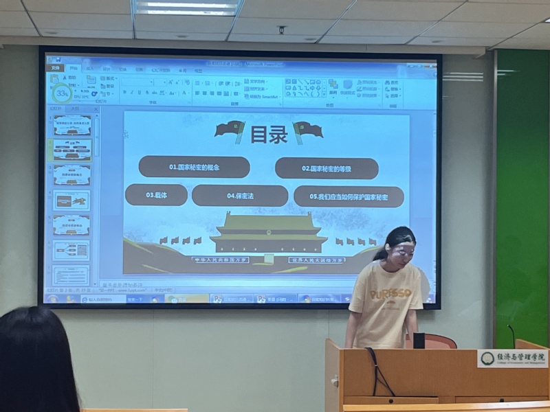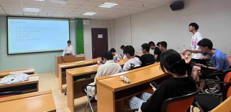 王礼丽带领同学们学习保密方面的基本知识,对安全保密案例进行重点讲解,带领大家从实际出发,提高安全防范能力,深刻领悟国家安全的重要性与必要性。