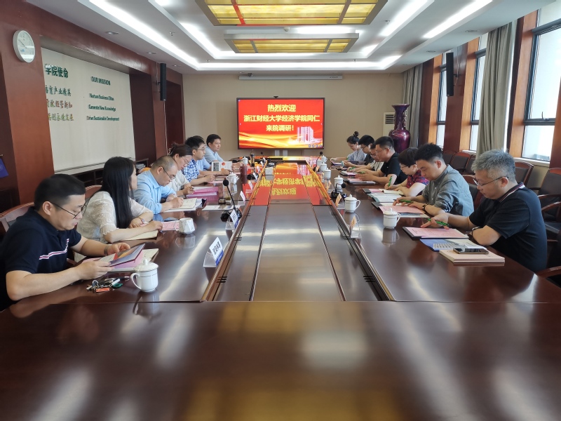 6月2日上午,浙江财经大学经济学院党委书记胡亦琴、院长王正新一行来访男人天堂 ,男人天堂 院长王群伟,党委副书记胡苹,副院长邓晶、王子龙、谢乃明、查冬兰,院长助理欧阳林寒参加调研座谈会。