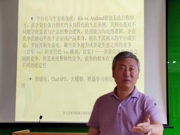 讲座尾声,姚小涛就企业的数字化转型中数字化技术利用与员工之间存在的互补和替代问题同与会的教师、博士生及硕士生展开了深入的探讨。姚小涛的讲座加深了大家对数字化转型的了解,引发了对企业数字化转型的关注与思考,为学院师生在未来选题和研究方向等方面提供了重要启发与指导。