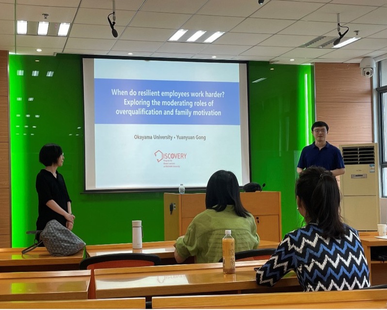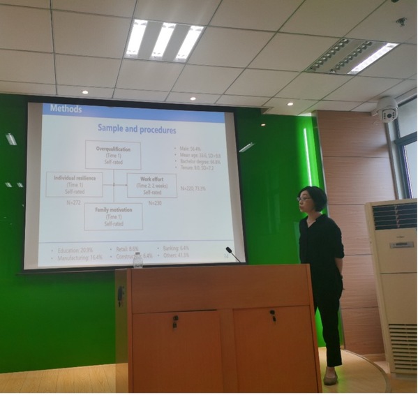 7月18日,男人天堂 人力资源管理研究所邀请到日本冈山大学副教授龚元元在学院702会议室为男人天堂 师生作了题为“When do resilient employees work harder? Exploring the moderating roles of overqualification and family motivation”的精彩学术报告。本次报告由青年教师刘奂辰主持,胡恩华、李媛,蔡静雯等教师以及博士生和硕士生参加了此次学术报告活动。