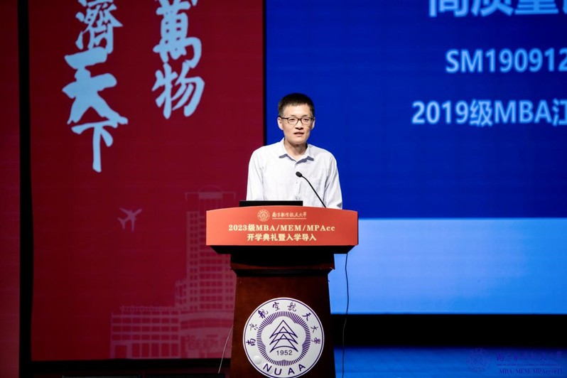 MBA教育中心执行主任杜刚,为所有新生作《全力以赴,打造优质的研究生生涯》主题报告。他认为读书破万卷,每一个进入南航的研究生,都应当充分利用好学校和学院的平台,全力以赴,绽放自我,度过一个高质量的研究生生涯。