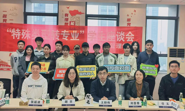 随后,2022年转入同学逐一汇报了一年来的成长与蜕变。获得园丁励志奖学金的宁心同学表示,这一年在学习上更加有信心,学院老师和同学们都非常的贴心和耐心;一学年零挂科的杨铸同学讲道,学院的“边读边跑团”改变了自己的精神状态,使得学业、生活都有了巨大的变化;曾经不擅交际的王业奇同学积极参与到学校招聘会志愿服务中去;退役复学、对原专业迷茫的刘鑫同学转入后一年绩点提升1.2……在交流过程中,王院长欣喜于同学们的蜕变,并为这来之不易的进步点赞。王院长耐心关怀学生们的到课率、上课前排就座率、课程学习感受等情况,并分享自己的大学生活,鼓励同学们不惧过往,发扬“吃苦”精神,攻克当下“难关”。