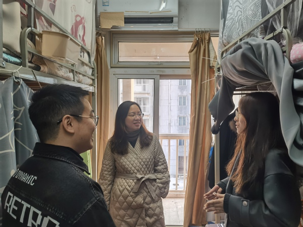 党委副书记胡苹前往学生宿舍,关心同学们的返校情况和假期学习生活情况,勉励大家调整状态、做好规划,以饱满的热情迎接新学期。同时,叮嘱同学们注意寝室用电、防火安全,关注天气变化,注意防寒保暖。