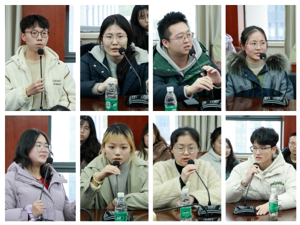参会老师认真听取了各位学生代表的意见反馈,从课程优化、科创训练、能力培养等方面对学生们提出的问题进行耐心解答与指引。党委副书记胡苹指出,学院后期将持续加大资源投入力度,为同学们提供更舒心的学习场所和更优质的教研条件;副院长谢乃明表示学院会尽全力为同学们升学深造及出国交流提供更多途径与机会;工商系教工党支部书记谢嗣胜建议大家明确发展定位,对自身提高要求,挖掘兴趣点,提升内驱力;经济系教工党支部书记徐菱涓鼓励学生们克服过度内卷的焦虑,把控自身学习节奏。