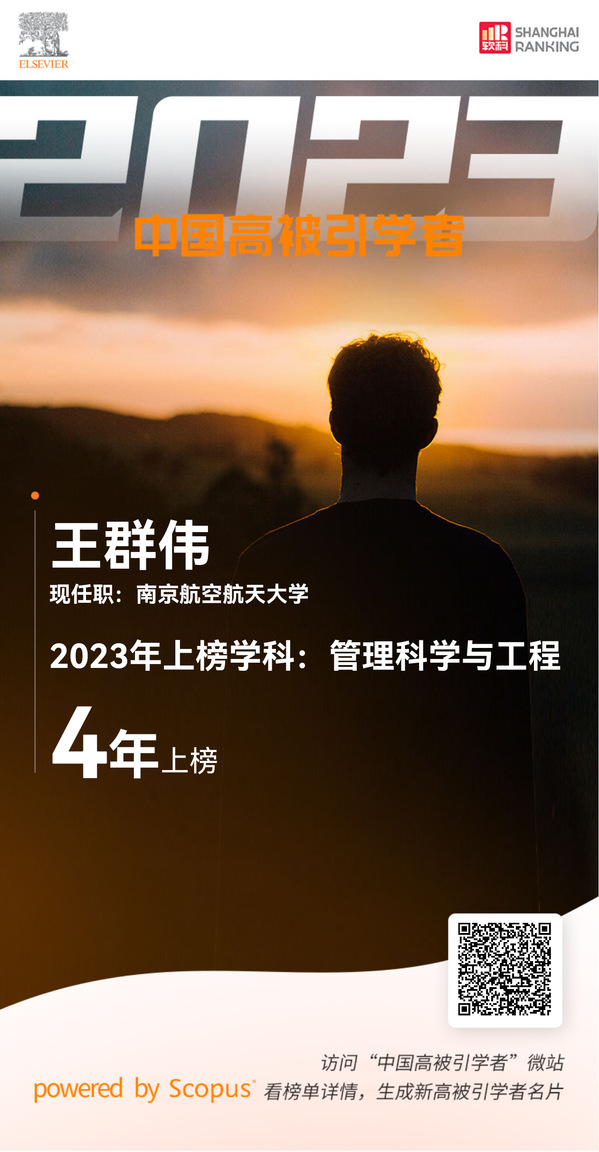男人天堂 王群伟教授入选“管理科学与工程”学科领域榜单,这也是继2020年、2021年、2022年上榜后再次成功入选该榜单。