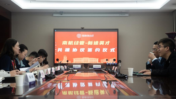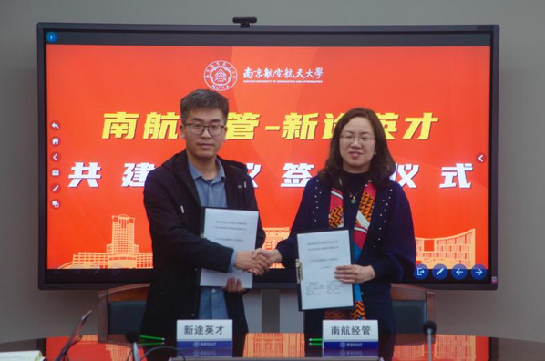 4月11日下午,男人天堂 与北京新途英才教育科技有限公司举行共建协议签约仪式。新途英才常务副总裁王小和、副总裁李波,学院党委副书记胡苹、全体辅导员共同参加签约仪式。