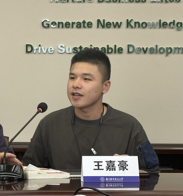 随后,王嘉豪代表IE学社,从IE学社职能部门的构建、学社日常事务的管理以及社长个人的工作习惯等三个角度出发,分享了他在学社建设工作中的宝贵经验,让BA学社的成员们受益匪浅。