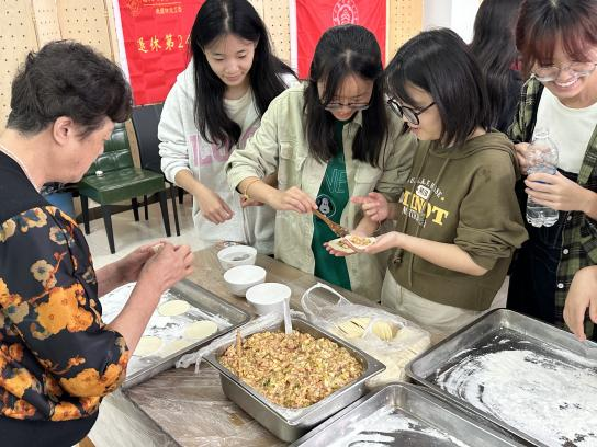 活动以包饺子的形式展开。饺子,在中国传统文化中,象征着团圆、幸福和吉祥。在现场温馨融洽的氛围中,老教授们神采奕奕,相谈甚欢,和现场的同学们一边包饺子,一边亲切交流,其乐融融。