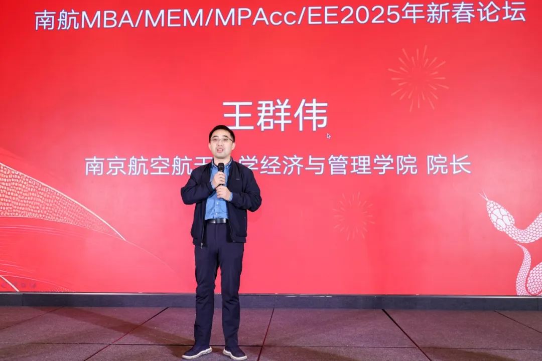 南航男人天堂 院长王群伟向莅临现场的各位嘉宾表示了最诚挚的欢迎,并致以新春的美好祝福。王群伟院长充分肯定了南航MBA联合会在2024年的工作成果,对全体成员的辛勤付出与努力给予了高度评价。同时着眼于 2025 年,王群伟院长也提出了新的期许,鼓励联合会在未来的工作中继续奋进,取得更加优异的成绩。