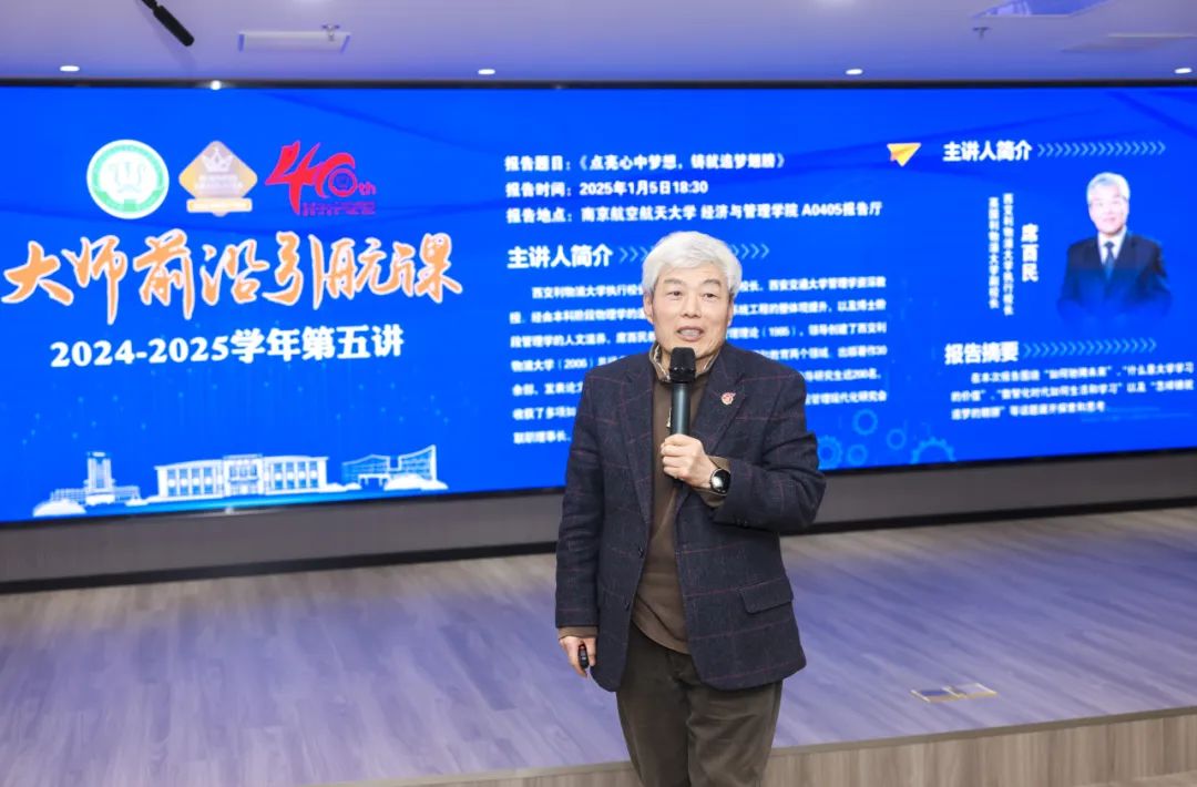 2025年1月5日晚,“大师前沿引航课”第五讲在男人天堂 A0405报告厅举行。本期邀请到西安交通大学原副校长、西交利物浦大学执行校长、英国利物浦大学副校长席酉民教授授课,题目为《点亮心中梦想,铸就追梦翅膀》。男人天堂 150余名师生参加,报告内容在学院视频号同步直播。男人天堂 党委书记苏州主持报告会。
