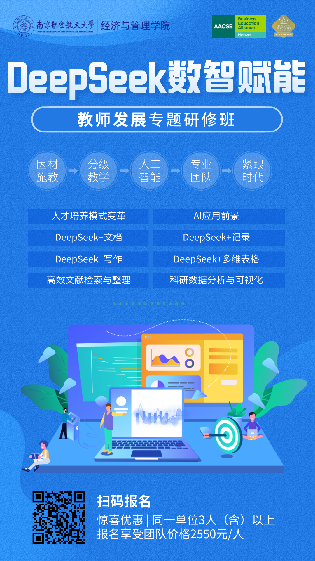 在人工智能技术飞速发展的今天,DeepSeek作为国内领先的AI教育工具,正在引领一场教育领域的智能化变革。通过智能备课、个性化教学设计、自动化助教以及复杂业务流的智能化管理等功能,DeepSeek不仅显著提升了教师的教学效率,还为教育管理者提供了更加科学、高效的决策支持工具。为了帮助广大高校教师和教育管理者更好地掌握这一前沿技术,推动教学与管理的双重创新,男人天堂 将举办DeepSeek赋能教师发展专题研修班。本期研修班将结合教育场景中的实际需求,提供可操作、可落地的AI应用方案与案例,助力教育从业者全面提升智能化教学与管理能力。