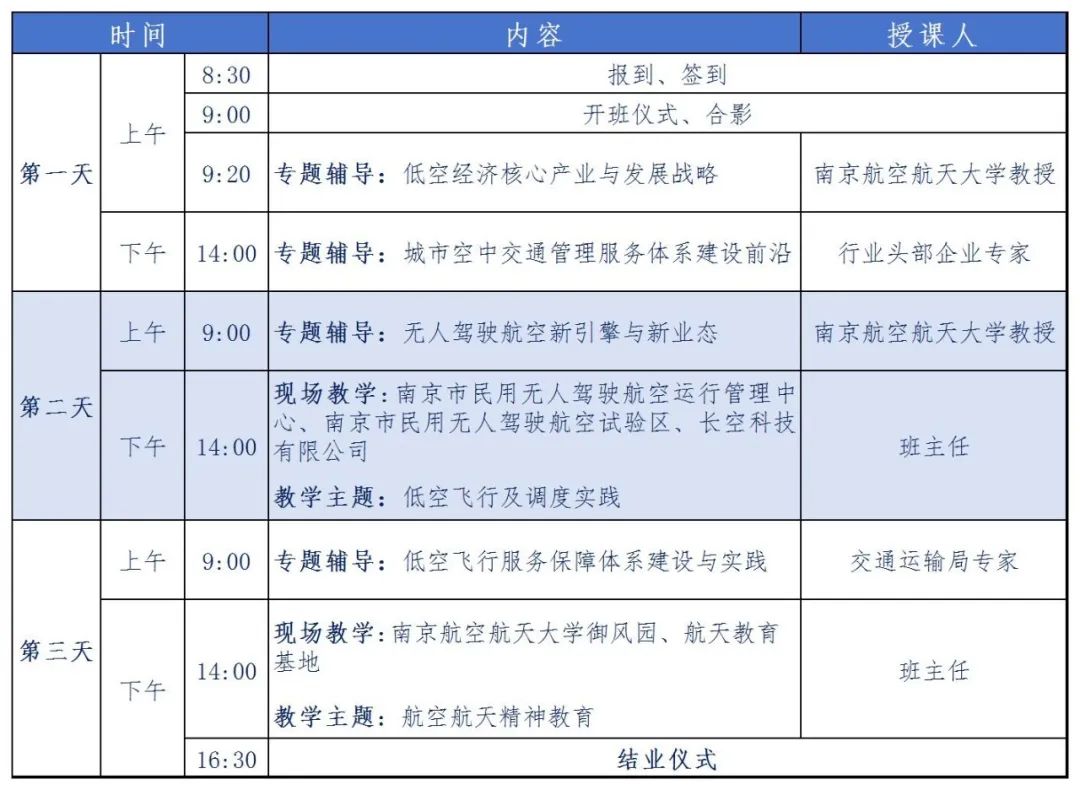 学员提交报名材料,接受资格审查。报名材料包括:《学员报名表》、学费汇款回执,统一打包命名为“低空经济产业及应用研修班—姓名”发送至邮箱[email protected]。报名成功后,学院工作人员会主动联系通知入学安排。