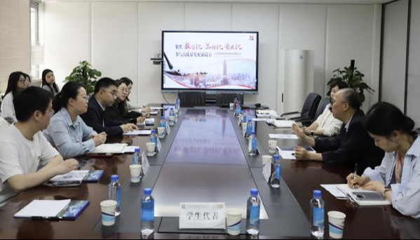 在座谈交流环节,张培根立足国企改制历程,详细介绍了公司作为外贸企业标杆的发展概况,以及未来要打造为世界一流企业的发展前景,并讲述外贸业务就业的要求及主要职责,表达了公司希望能够通过人才输送、实习实践、交流活动等渠道助力校企关系向新的台阶迈进的愿景。