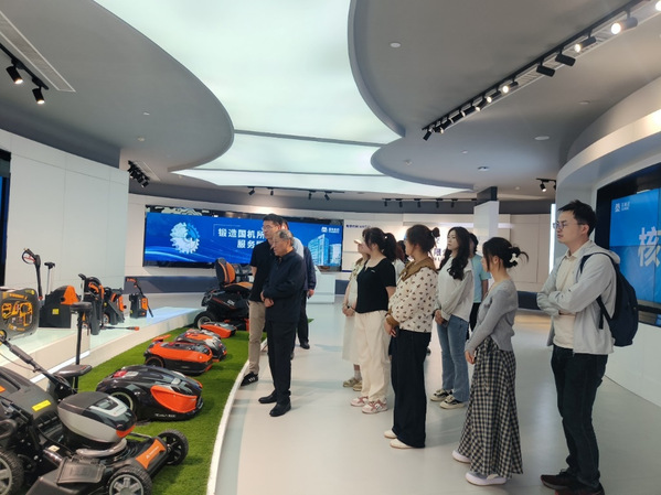 在国贸专业优秀校友、苏美达技术公司第五机电事业部兼锡美达公司总经理曹可军的介绍下,学院一行参观了苏美达企业展厅和产品展厅。在参观过程中,同学们深入了解了苏美达的发展脉络,从创业初期的艰辛探索,到逐步在市场中站稳脚跟,再到如今成长为行业巨擘,每一步都凝聚着无数苏美达人的智慧与汗水。