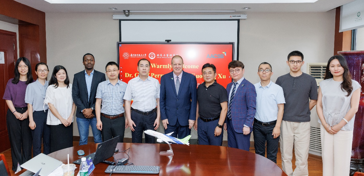 2025年6月4日下午,AACSB(The Association to Advance Collegiate Schools of Business)国际高等商学院协会执行副总裁Geoff Perry博士与东亚区负责人徐国栋先生一行访问男人天堂 ,指导学院AACSB国际认证工作。学院党委书记苏州、教授委员会主席周德群、副院长周志鹏、国际认证主管赵亚普、以及学院AACSB国际认证专班教师代表参加了座谈交流会。