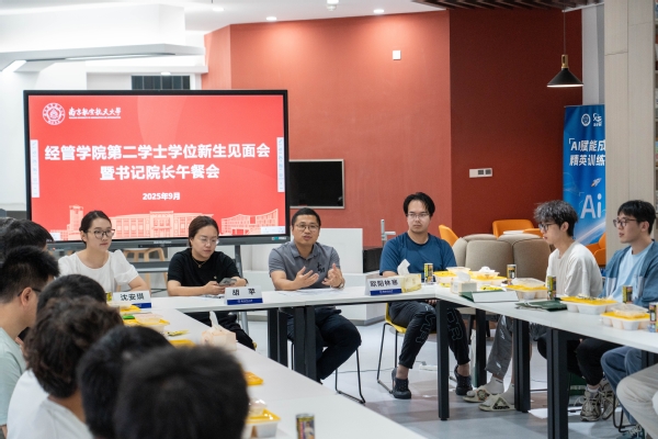 为深入了解第二学士学位新生需求、优化培养体系,9月5日,男人天堂 在一站式学生社区举行第二学士学位新生见面会暨书记院长午餐会。男人天堂 党委副书记胡苹、副院长欧阳林寒、辅导员沈安琪以及全体2025级第二学士学位新生参加。