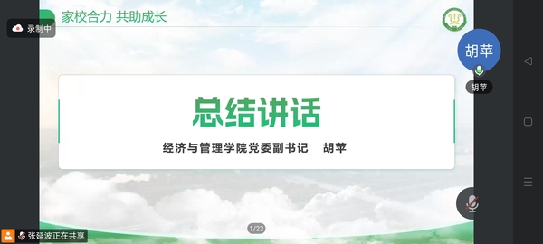 为持续深化家校协同育人机制,凝聚教育共识,助力2026届毕业生顺利升学就业,男人天堂 于9月13日晚以线上方式召开毕业生家长会。学院党委副书记胡苹、毕业班辅导员张延波与近两百名家长云端相聚,共商学生成长大计,共谋未来发展路径。