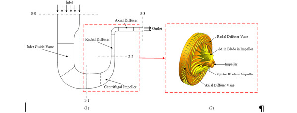 Fig. 1 The meridian plane and the 3D structure of the centrifugal compressor under investigation