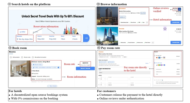 Fig. 1.Business sequence in online booking system with blockchain-based platform.